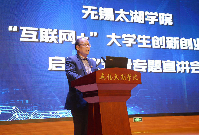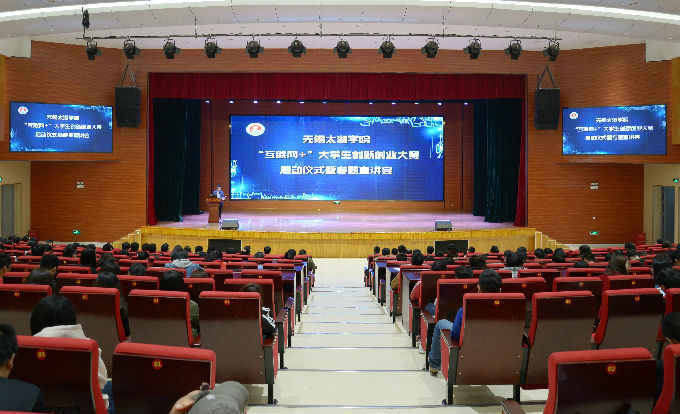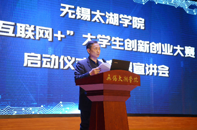 本网讯 2019年3月21日下午,无锡太湖学院第五届“互联网+”大学生创新创业大赛校赛启动仪式暨专题宣讲会在工科大楼报告厅隆重举行。学校党委副书记丁涛出席会议并致辞,特邀专家、省教育厅“互联网+”赛事辅导专家吴思雨、“互联网+”国赛评委、中科院苏州先进技术研究院新兴产业创新中心主任王阳应邀参会并作主题报告,学校各相关部门、各二级学院有关负责同志、500多名大学生代表参加了会议。
