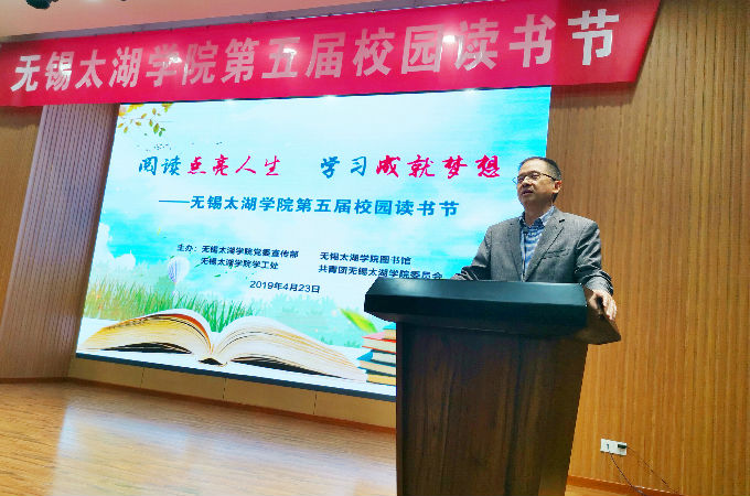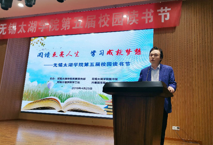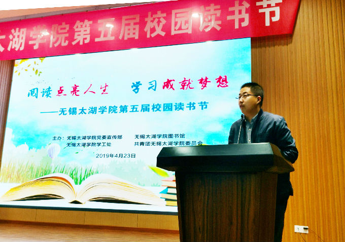 本网讯 读书不觉已春深,一寸光阴一寸金。2019年4月23日,在第24个“世界读书日”来临之际,无锡太湖学院第五届读书节开幕式在大学生活动中心隆重举行。本届读书节活动以“阅读经典 优化学风 立志成才”为主题,由无锡太湖学院党委宣传部、图书馆、学生工作处、团委联合举办。党委宣传部、图书馆、学生工作处、团委、校长办公室负责人,各二级学院院长、党总支书记、副书记和负责宣传工作的具体人员,大一各班班长、团支书、宣传委员,大学生记者团、新媒体中心等学生组织与学生代表出席开幕仪式。开幕式由党委宣传部部长阙明坤主持。