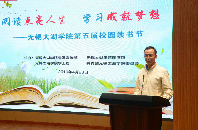 在与会人员热烈的掌声中,阙明坤部长宣布无锡太湖学院第五届校园读书节开幕。学校办公室主任朱中伟、学生工作处处长郑斌、团委副书记陈朕、图书馆副馆长刘文社、物联网工程学院院长惠晶、土木工程学院院长于安林、会计学院院长唐建荣、外国语学院院长包通法、物联网工程学院党总支副书记沈峰、机电工程学院党总支副书记杨学圣、土木工程学院党总支副书记余波、会计学院党总支副书记蒋昊霖、外国语学院党总支副书记俞昊波、艺术学院党总支副书记武蓓蓓、护理学院党总支副书记胡宇共同启动无锡太湖学院第五届校园读书节开幕仪式。