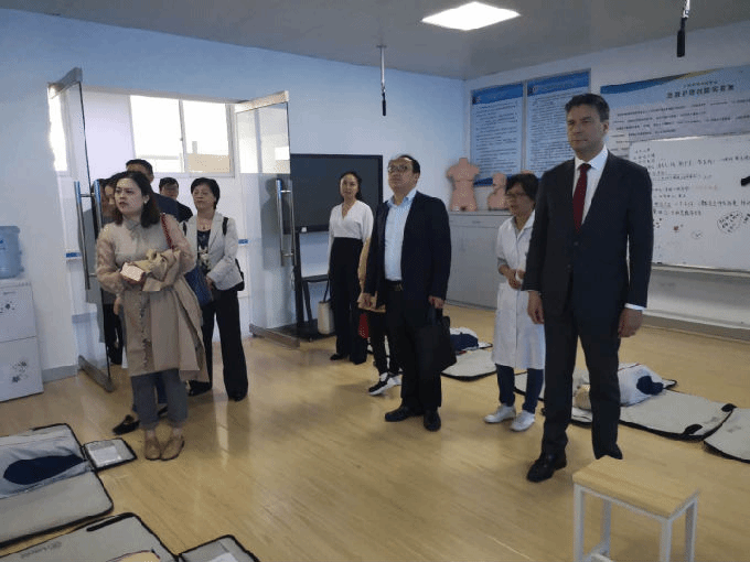 最后Freek Lapré一行在护理学院教师的带领下参观了护理学院实验实训中心,深入了解了护理学院本科生的教学情况,高度评价了护理学院本科教学的规范化。