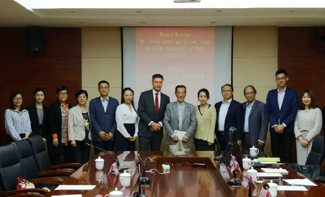 本网讯 2019年5月8日,荷兰提尔堡大学健康管理学院院长、欧洲养老服务研究与教育中心创始人Freek Lapré、前荷兰贸促会亚洲部部长张畅、江苏耘林养老集团苏嘉集团联合总裁张雪松及耘林健康产业总经理、康复医院执行院长江静一行莅临我校访问交流。我校副校长王心如、国际交流与合作处处长吴导佳、护理学院副院长周鸣鸣、物联网工程学院副院长方宁生及护理学院党总支副书记胡宇参加了交流会。