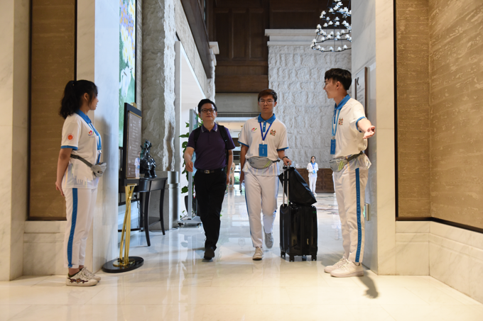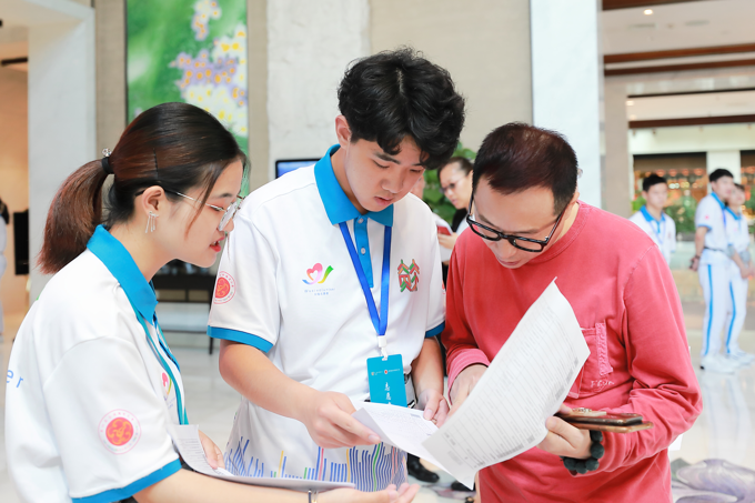 除了忙碌在各志愿组的90余名学生志愿者,我校也有5名青年教师志愿者参与了大会保障工作。其中,来自外国语学院的花荣臻老师服务于一对一VIP接待岗位,主要为与会外宾的商务洽谈、线路参观、接待采访提供交替传译、讲解翻译等多项服务,架起中外嘉宾沟通交流的桥梁。花老师认为,能有幸入选本次锡商大会志愿服务,为大会召开贡献自己的力量,对他说是一份宝贵的志愿服务经历。