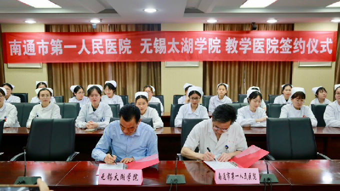 近年来,无锡太湖学院已经和无锡市人民医院、市第二人民医院、市第三人民医院、市第四人民医院、解放军904医院、市第九人民医院,市妇幼保健院、市精卫中心、无锡卫生高职校签约,并且已经建成校内护理学实验实训中心。此次与南通市第一人民医院签约,标志着无锡太湖学院护理学学科建设及教学医院和实训基地建设取得阶段性成果。无锡太湖学院同各教学医院共建临床教学实习基地,联合培养人才,联合研发,协同创新,实现“共享双赢”,合力推进太湖学院与医院之间优质教育资源的共享,将进一步提高无锡太湖学院应用型本科教育教学质量,提升无锡与南通两地的医疗保健和医务水平,进一步对接江苏省社会公共服务体系,促进无锡以及南通经济社会的健康、稳定发展。(护理学院)