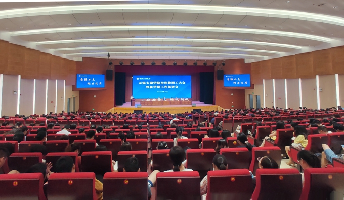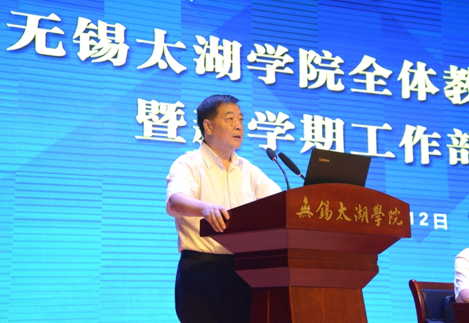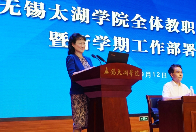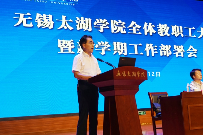 本网讯 奋进迎华诞,砥砺守初心。9月12日下午,无锡太湖学院召开全校教职工大会暨新学期工作部署会。学校理事长、党委书记金秋萍部署2019年下半年党建工作,校长徐从才部署2019年下半年行政和教育教学工作。学校常务副校长李廉水,校领导何宏金、王心如、金成、丁涛、陈鹏飞、陈晓东,全校教职工出席会议。会议由副校长何宏金主持。