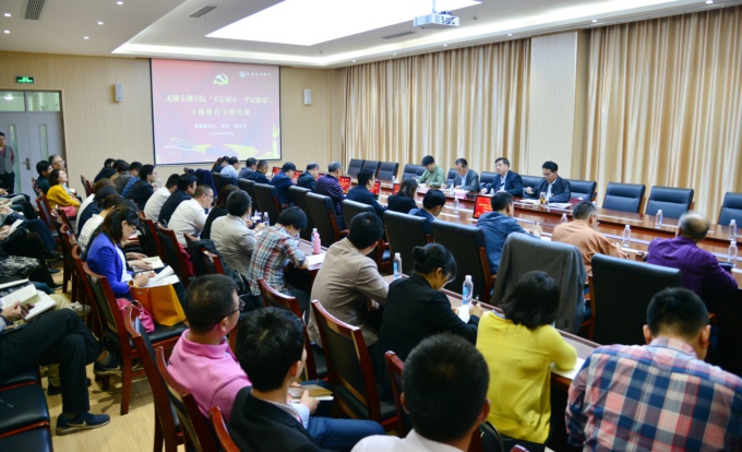 本网讯 10月24日下午,“不忘初心、牢记使命”主题教育专题党课在工科大楼一楼会议室召开。本次党课由校长、党委副书记徐从才主讲。校党委委员,全体中层干部,各二级学院党总支书记、副书记参加。