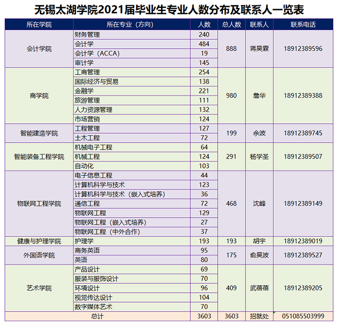 我校2021届毕业生共有3603人,其中商学院980人、会计学院888人、物联网工程学院468人、智能装备工程学院291人、智能建造学院199人、外国语学院175人、健康与护理学院193人、艺术设计学院409人。2021年春季校园招聘工作将于3月正式启动,为保证疫情防控常态化下校园招聘工作便捷、高效、有序开展,现将相关事宜作如下说明: