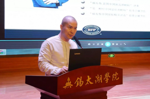 美国RFP学会中国中心总裁梁辉在致辞中鼓励学生在校期间学习和掌握必要的金融理财知识,为未来走出校园、开启幸福人生之路打下基础。同时,他呼吁太湖学院金融专业学生在毕业后加入到理财师这个朝阳行业中来,拥有更好的职业前景和收入回报。