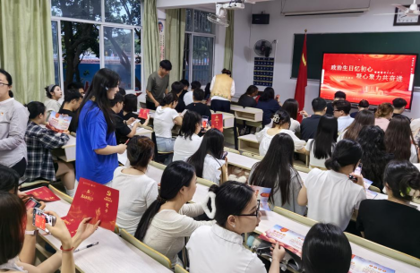 重温誓词后,现场举行了庄重而温馨的“政治生日贺卡”颁发仪式。学院党总支副书记蔡颖、学生人资党支部书记王晓怡等为毕业生党员逐一送上精心设计的“政治生日”纪念贺卡。一张张承载着组织殷切期望和美好祝福的贺卡,既是对党员个人政治生命的纪念,也饱含着学院党组织对即将远行学子的深情嘱托与关怀,激励大家不忘初心、砥砺前行。