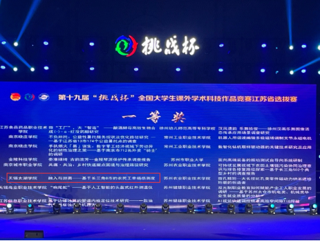 6月8日,第十九届“挑战杯”全国大学生课外学术科技作品竞赛(大挑)江苏省选拔赛决赛在南京信息工程大学举行。本次比赛竞争激烈,共有来自全省高校的456支优秀队伍入围决赛。经过激烈角逐,无锡太湖学院商学院团队凭借作品《融入与游离——基于长三角8市的农民工幸福感测度》脱颖而出,荣获省级一等奖,这是我校商学院首次在该赛事中斩获省一等奖,实现了历史性突破!