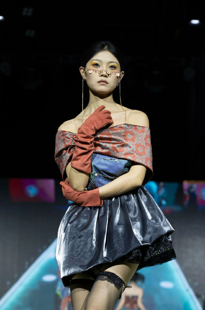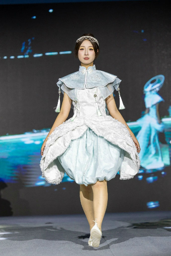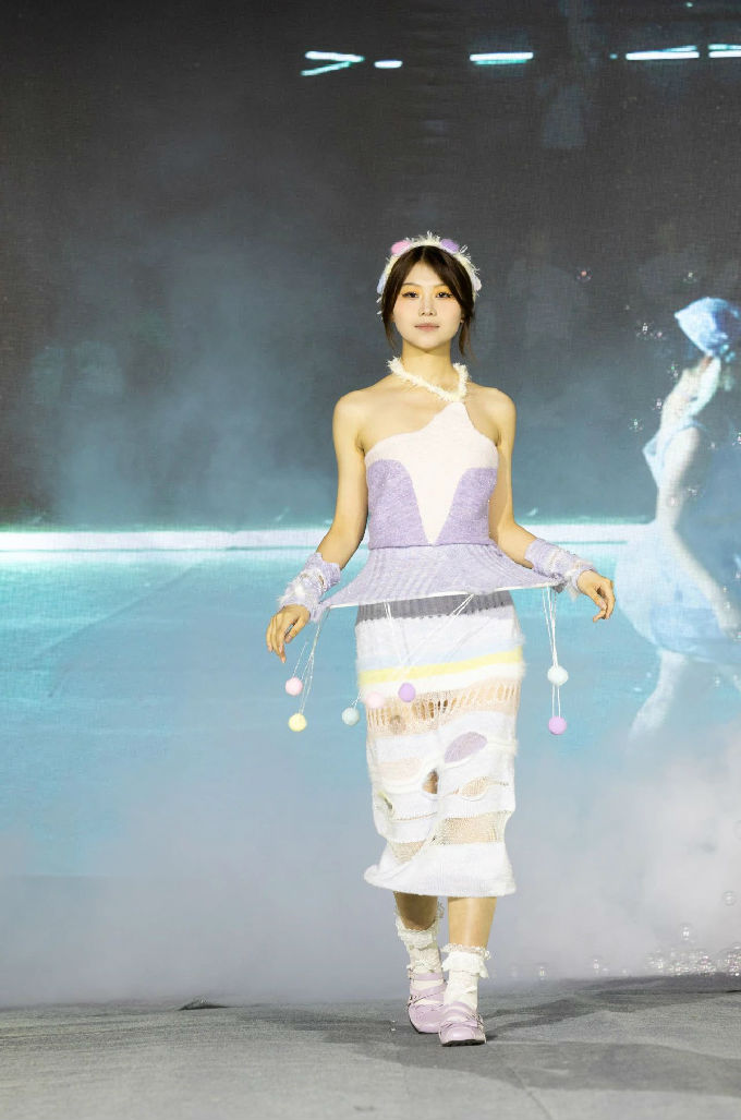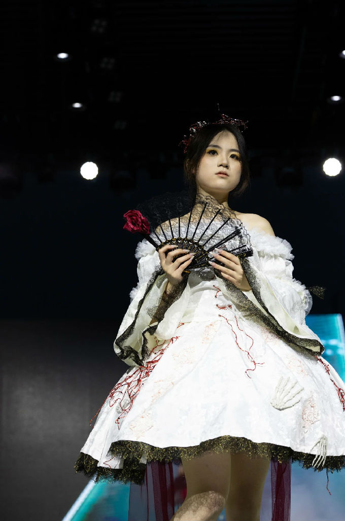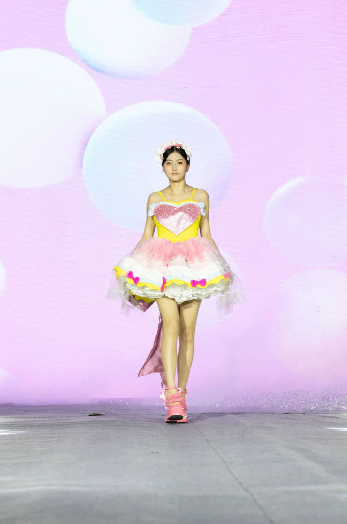 走进第一篇章“霓虹跃动”,我们仿佛进入了一个充满幻想的世界。当软萌元素邂逅时尚剪裁,一系列融合二次元与温柔风格的服装作品逐一亮相。这些作品不仅展现了设计师们的才华与 创意,更体现了太湖学院艺术学院对时尚潮流的敏锐洞察。