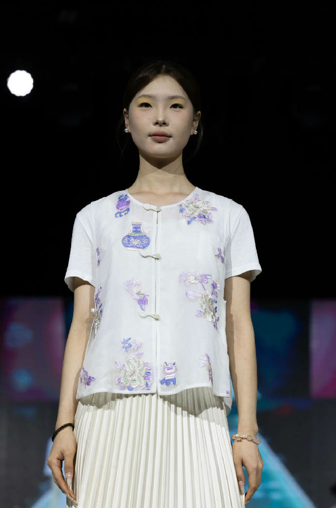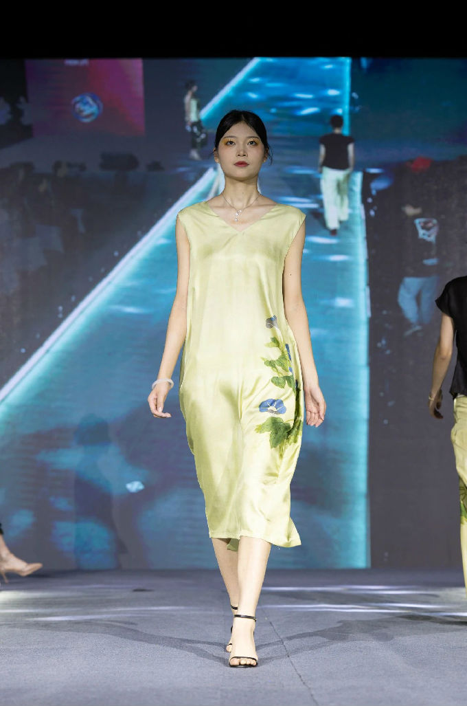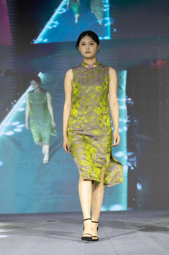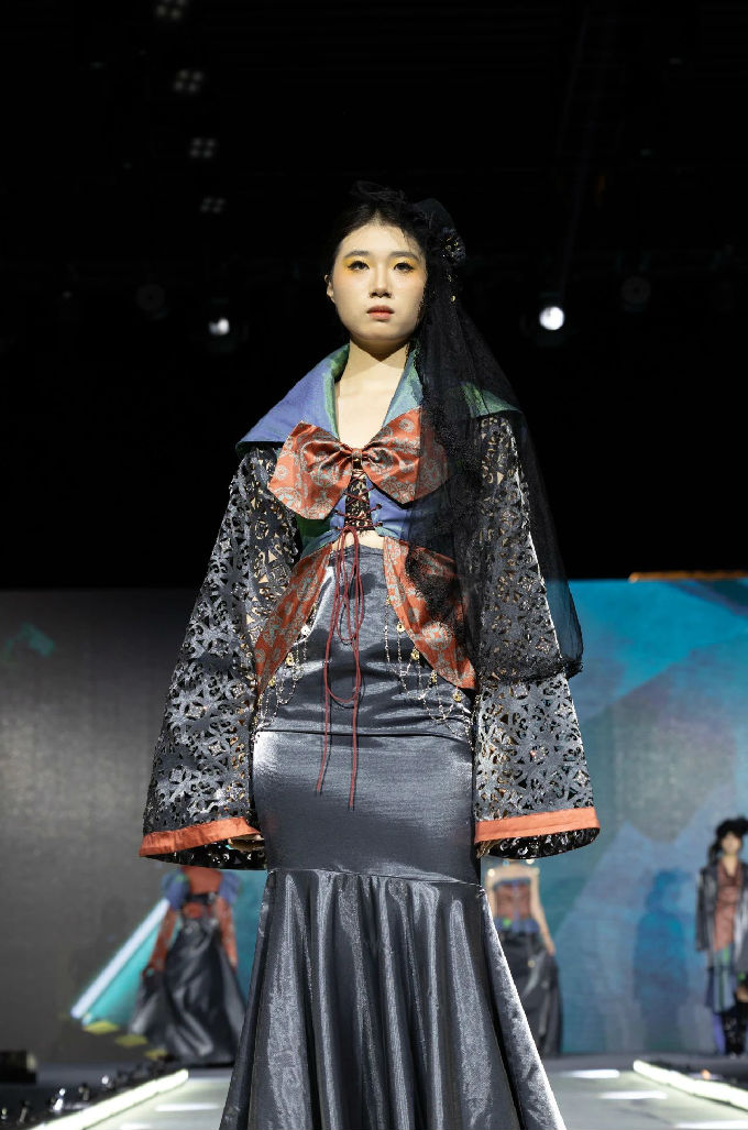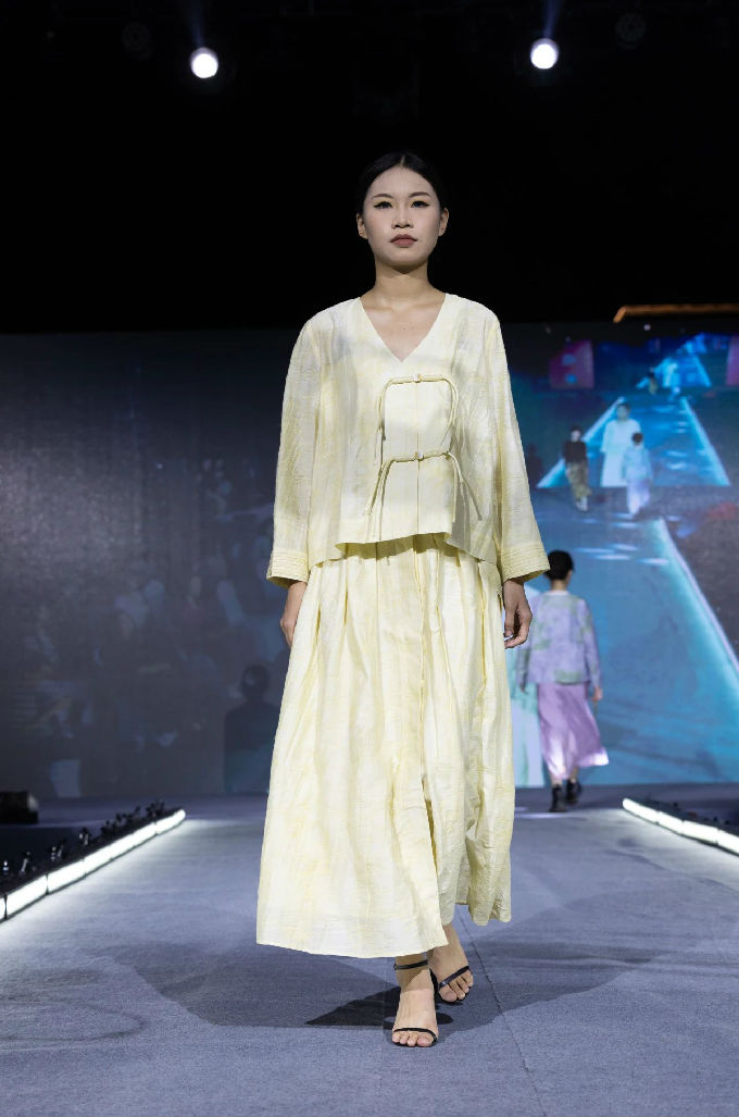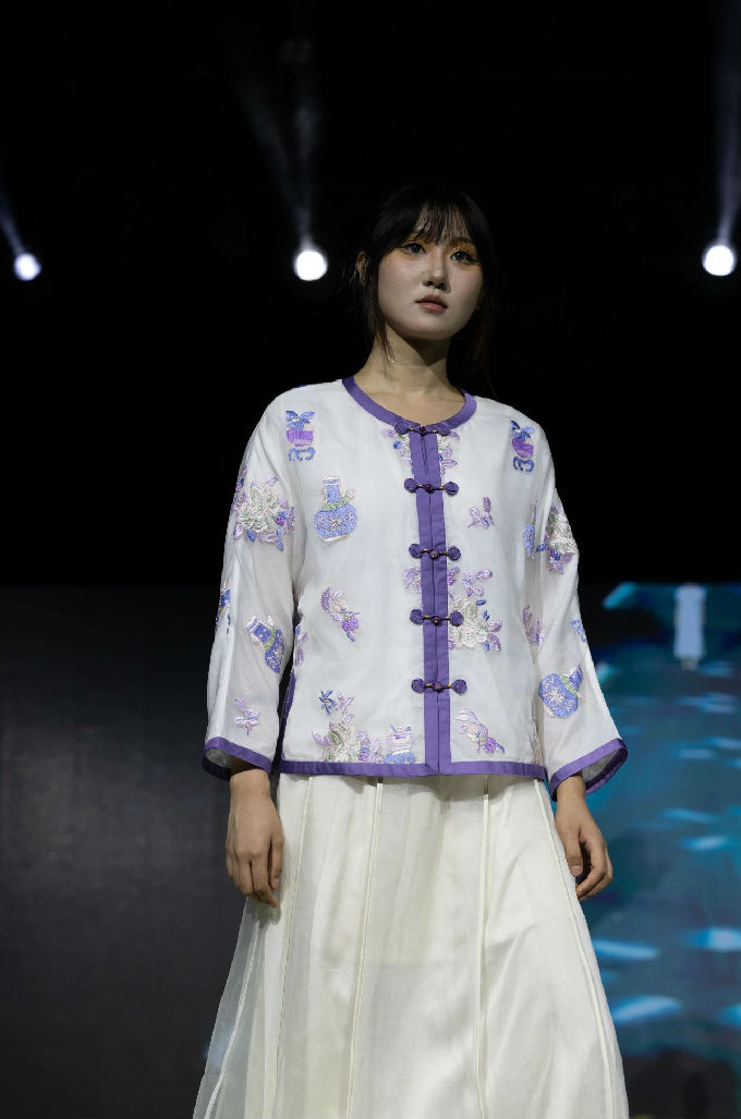 本次走秀的高潮部分,莫过于第三篇章——教师产学研原创品牌“荣”新品发布展演。这个新中式风格的品牌,不仅展现了太湖学院教师们的产学研成果,更体现了他们对传统文化的热爱与传承。发布会上,一系列设计独特、制作精良的新品逐一亮相,赢得了现场观众的热烈反响。这些作品不仅展示了设计才华,更树立了榜样 ,激发了同学们对艺术创作的热情与追求。