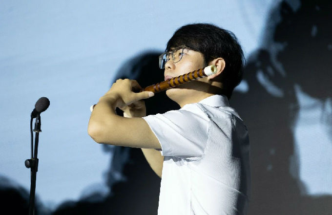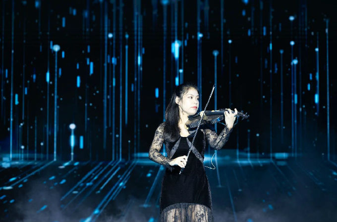 竹笛独奏《青花瓷》悠扬响起,笛声清脆如泉,与现场的霓虹灯光交相辉映,为第一篇章增添了一抹古典的韵味。演奏者以精湛的技艺,将这首经典曲目演绎得淋漓尽致,赢得了观众的热烈掌声。