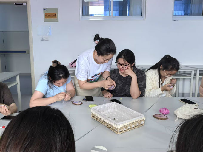 “这种活动形式很新颖,通过刺绣,我能够静下心来,更好地与自己的内心对话,也增进了和同学们之间的感情。”参与学生分享道。活动现场氛围轻松,笑声与讨论声此起彼伏。许多学生表示,专注于指尖的细腻动作时,繁杂的课业压力得以暂时搁置,取而代之的是内心的宁静与成就感。马老师亦感慨:“这种沉浸式的手工体验不仅能锻炼专注力,更是一种无声的情绪表达——针脚密疏间,皆是心绪的投射。”
