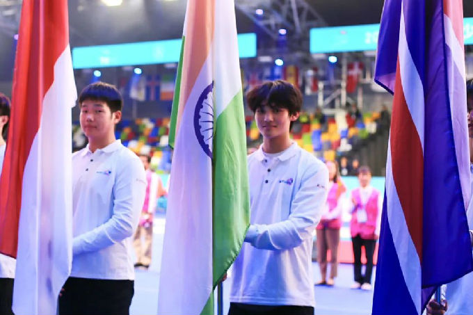 4月7日,大赛开幕式盛大启幕,来自艺术学院学生党支部毅志艺行志愿服务工作室的YI行志愿者们,以昂扬的姿态担任101个参赛国家的执旗手。他们手持各国旗帜,步伐整齐划一、身姿挺拔矫健,伴随着激昂的音乐,引领各国运动员依次入场。
