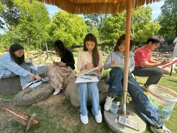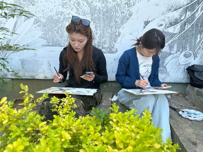艺术学院的学生们走进孔雀溪,进行写生活动。大家分散开来,寻找最佳观察和绘画位置,或蹲坐,或倚靠,专注地观察孔雀的一举一动。面对姿态各异的孔雀,志愿者们迅速勾勒出孔雀的轮廓,捕捉它们最灵动的瞬间。有的同学用细腻的线条描绘孔雀尾羽的纹理,有的用水彩晕染出孔雀羽毛的绚丽色彩。为了更生动地表现孔雀动态,他们不时放下画笔,观察孔雀开屏、嬉戏的姿态,将这些鲜活场景融入画作之中。