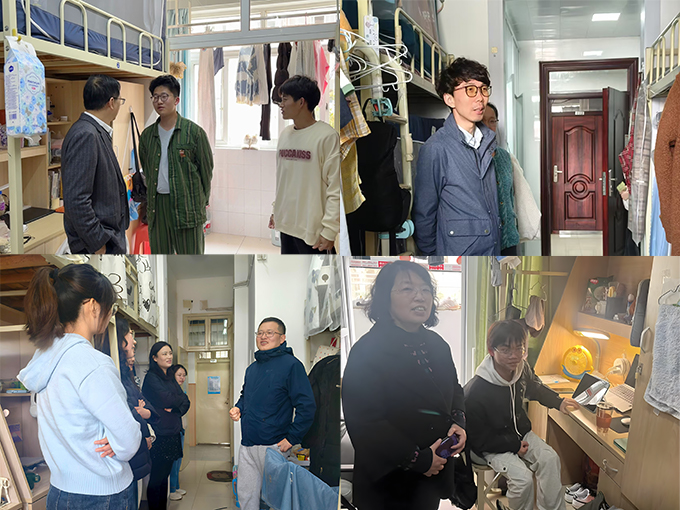 走访过程中,领导和老师们与同学们就专业知识学习、宿舍文化培育、科研实践探索、职业发展规划等方面交流意见建议。领导和老师们鼓励大家加强宿舍文化建设,营造和谐、积极向上的宿舍氛围。老师们详细检查了宿舍内的电器使用等情况,同时就网络安全、交通安全、反诈等方面进行了宣传教育,提醒同学们要增强安全防范意识,遵守宿舍安全规定,共同维护校园安全与稳定。