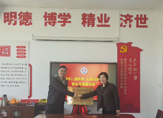 为加强校企合作、推动产教深度融合,无锡市儿童医院与无锡太湖学院联合举办的“就业专题座谈会”于2025年3月21日在健康与护理学院5号楼二楼会议室成功举行。会上,双方正式揭牌“优质就业基地”,并围绕儿科医护人才培养、实习就业一体化等议题展开深度交流。无锡市儿童医院副院长朱立红、无锡市儿童医院组织人事处副处长满祎、无锡市儿童医院护理部主任助理冯晓艳等一行,无锡太湖学院副校长陈鹏飞、无锡太湖学院招就处处长张国华,无锡太湖学院健康与护理学院党总支副书记胡宇、副院长宋绍征等领导共同参与活动。