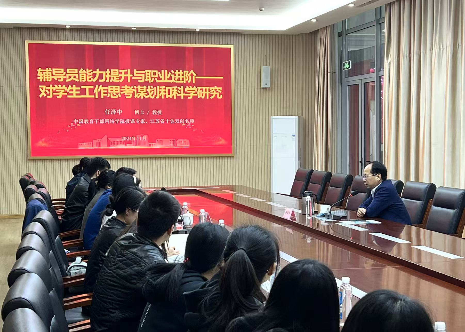为进一步提升辅导员队伍的整体素质与工作能力,加强辅导员服务的专业化与职业化建设,物联网工程学院于11月19日上午在工科大楼一楼会议室,成功举办了第三期“筑新梦、增才干、善育人”辅导员培育工程的第一课。本次学习以“辅导员能力提升与职业进阶—对学生工作思考谋划和科学研究”为主题,旨在帮助辅导员深入理解自身角色定位,掌握先进的学生工作理念与方法,增强解决实际问题的能力,科学有效规划职业生涯路径,从而更好地服务于学生的成长与发展。