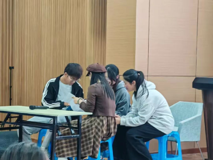 活动中期,比赛过程中,有的队伍聚焦于学业压力下的自我突破,有的则围绕人际关系的微妙变化展开,从不同角度反映了当代学生的心理状态。现场观众沉浸其中,随着剧情的发展或欢笑或沉思。从剧本创作来看,每场心理剧的演示深入人心的展现出了极高的水平。同学们深入挖掘生活中的心理现象,精心设计情节和冲突,使得故事既有深度又富有吸引力。这些剧本不仅是简单的故事,更像是一把把打开心灵之门的钥匙,引导大家去思考、去感悟。