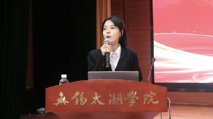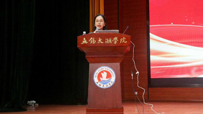 紧接着,许心怡老师上台进行爱国主义教育宣讲,谨借习总书记之言:“爱国主义是我们民族精神的核心,是中华民族团结奋斗、自强不息的精神纽带。”强调坚持与弘扬爱国精神具有十分重要的意义,作为飘扬红旗下勃然生长的中国青年,我们应坚守理想抱负,牢记时代使命,将个人之梦与国家之梦结合起来,乘风破浪,笃行不怠。