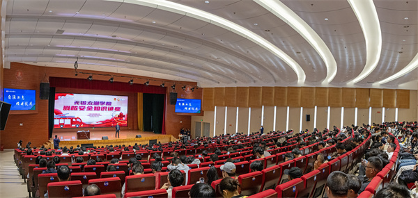 值消防安全月临近,为增强师生消防安全意识,普及消防安全知识,提高师生职工防火自救能力,让“人人讲安全、个个会应急”成为校园新风尚,10月23日,学校保卫处联合校团委在工科楼实验大楼报告厅举办“无锡太湖学院2024年秋季消防安全知识讲座”。讲座特邀无锡市消防救援支队参谋俞翼担任主讲,教工代表、实验室实验员、食堂管理人员、餐饮从业人员以及学生共计近1000人参加,保卫处孙光主持。