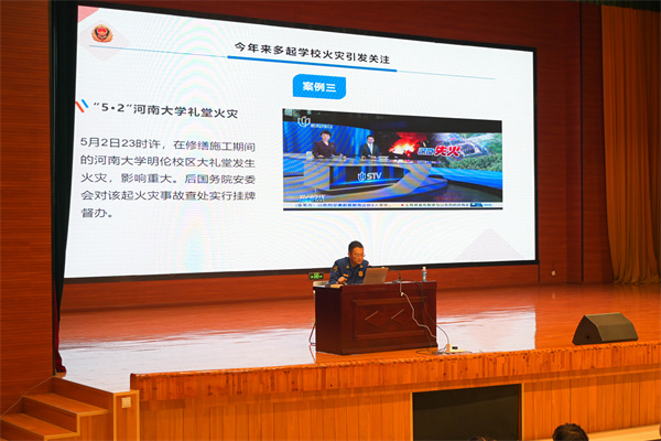 讲座中,俞参谋通过一个个真实的案例,结合图片和视频资料,深入浅出地讲解了校园消防安全的重要性,全面介绍了在日常的学习生活中应注意的消防安全细节、如何扑救初期火灾以及火灾中如何自救、逃生等知识,并对消防器材的正确使用做了细致的讲解和演示。讲座过程中师生和工作人员认真聆听,积极参与互动,对消防安全知识有了更深刻的认识。