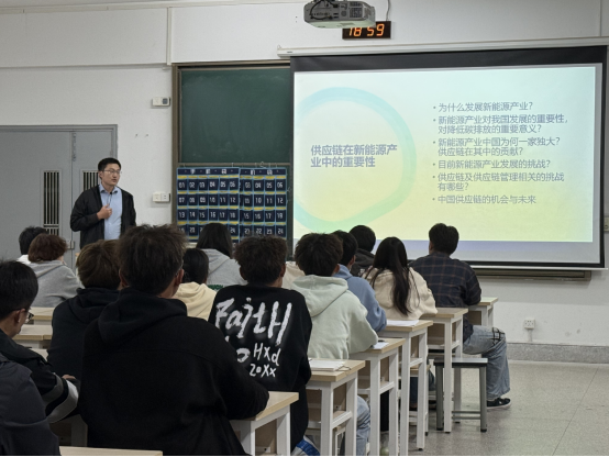 2024年10月24日19:00,无锡太湖学院商学院迎来了一场别开生面的专题讲座。本次讲座以“供应链在新能源行业的重要性”为主题,由无锡太湖学院产业教授、无锡某新能源电池工厂厂长华涛杰先生主讲。讲座面向商学院供应链管理专业2024级新生,旨在帮助新生们了解新能源行业的发展趋势,供应链管理在该领域的核心作用,培养新生对于自己所学专业的兴趣。