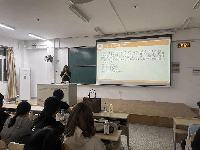 活动伊始,辅导员卢玉杰老师为学生们介绍了学长学姐们的就业情况。卢老师详细列举了往届毕业生的就业去向,包括知名企业、金融机构、政府部门以及继续深造的研究生等。他指出,财务管理系的毕业生凭借扎实的专业知识和实践能力,在就业市场上表现出色,许多学长学姐已经成为了各自领域的佼佼者。卢老师的介绍大大鼓舞了学生们的专业学习热情,让他们对未来的职业发展充满了信心。