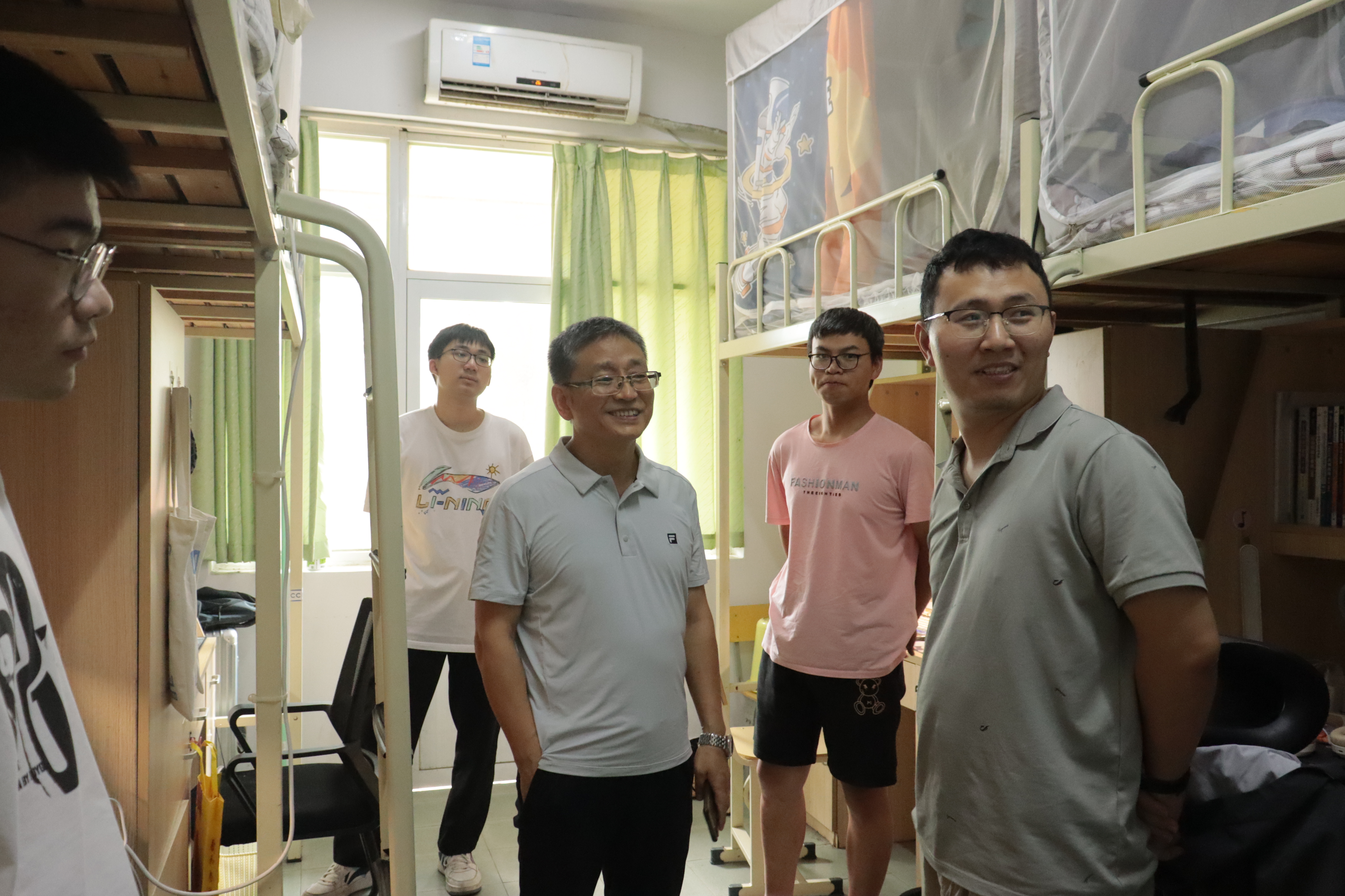 9月9号的下午,秋日和煦的阳光下,物联网工程学院院长成本茂,尹嵘博士,辅导员成丹铭、王洋老师深入学生宿舍,进行走访慰问。院领导及辅导员老师们一行先后走访北区29、30、31号学生公寓。“同学们,新学期开始了,希望大家能够迅速调整状态,以饱满的热情投入到学习和生活中去。”成本茂院长给同学们送去了鼓励与期待。成院长还特别强调宿舍安全与和谐的重要性,鼓励大家相互帮助,共同营造温馨、舒适的学习生活环境。尹嵘博士与学生们进行亲切交谈,询问学生假期生活的点滴、新学期的规划以及对学校学习生活的期待与建议。新生们纷纷表示,院领导的到访让他们感受到了家的温暖和关怀,他们将不负众望,努力学习,积极参与学校和学院的活动,为构建和谐、文明、奋进的校园文化氛围献出自己的一份力量。