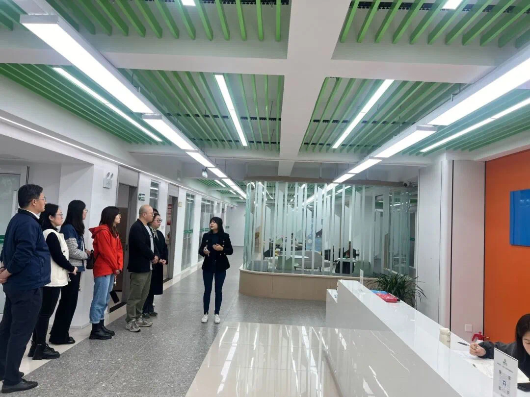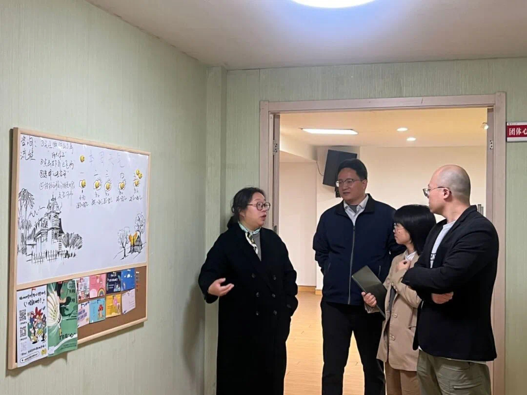随后,扬州大学建筑科学与工程学院张院长、田主任和潘秘书带领我院一行,近距离参观了“一站式”社区服务功能室。扬州大学大学生“一站式”社区设有“七大功能区”,包括接待区、党团活动区、沙龙共享区、资源集结区、师生互动区、研学乐享区和运动区。学生社区的建设理念是以师生为中心,旨在以思政工作力量进驻和成长服务资源导入为抓手,构建虚实结合,实现“思想引领在身边,管理服务在指尖”的工作目标。屈老师则带我院一行参观了扬州大学大学生心理健康工作站,并详细介绍了工作站的功能模块及运行情况。
