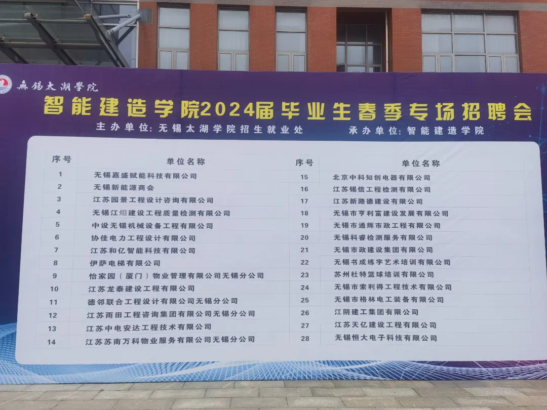 此次招聘会的成功举办为我院2024届毕业生们的就业道路提供了有力的保障,让学生能够学有所用,实现个人价值。同时也让学院与无锡地区企业之间的联系更加紧密,为企业今后的高质量发展注入了新鲜的血液,为无锡的建设发展做出应有的贡献。