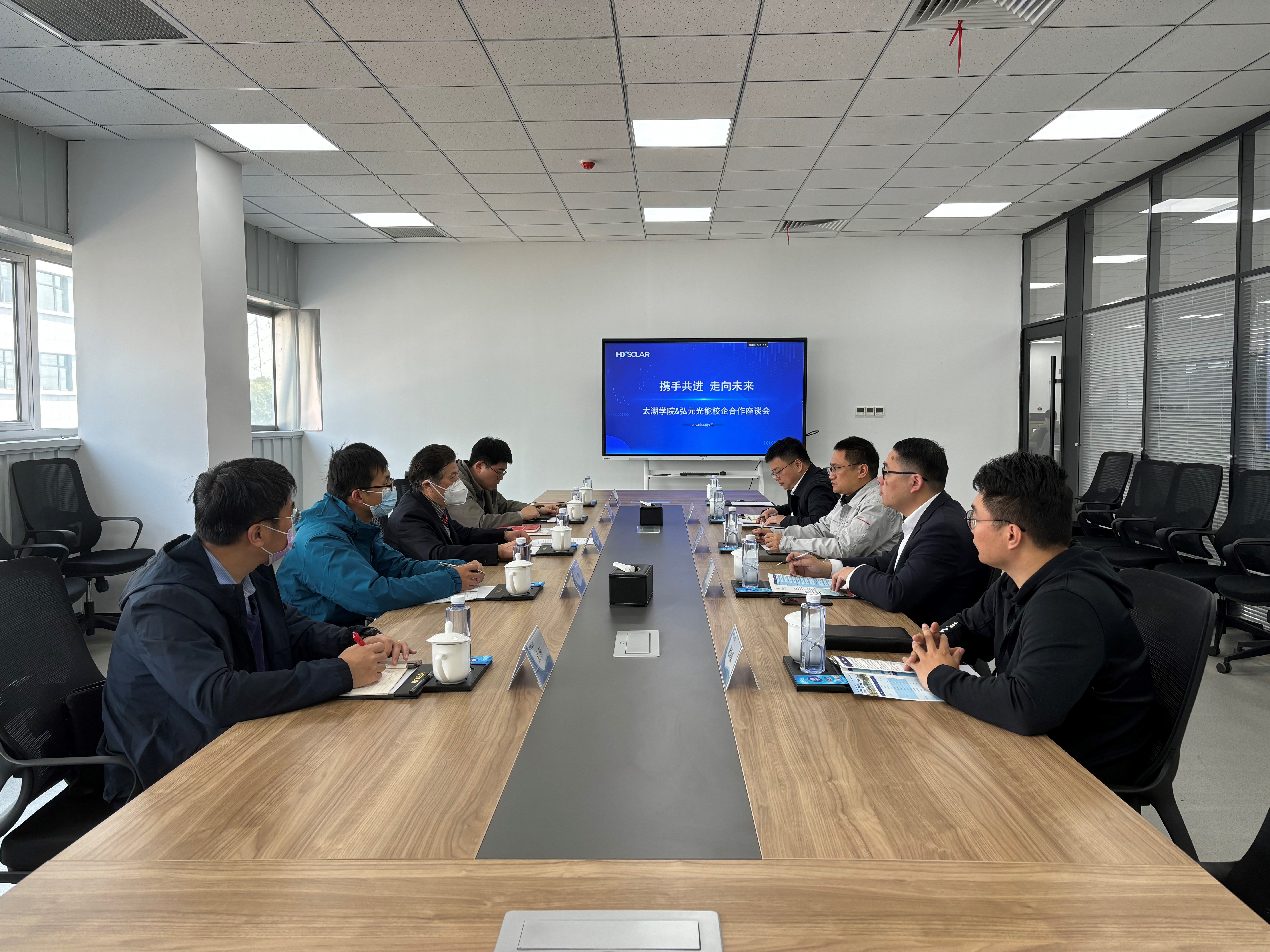 智能装备工程学院袁院长介绍了无锡太湖学院办学的基本情况,并着重介绍了目前大四学生的实习情况、专业技术类别和往届学生留锡率。袁院长指出,要让我们的学生留在无锡,并在无锡生根发芽,最终为无锡城市发展做出贡献。这需要学校与企业之间建立紧密的联系,并匹配企业的实际需求,对接安排相关实习实训课程,更好的让学生找到符合自身职业规划的工作。袁院长还强调,加强太湖学院与弘元光能的产学研合作,联合申报江苏省高校重点实验室。
