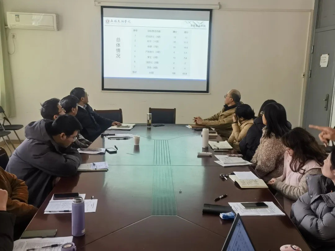会议伊始,于院长向全体教职工汇报了学院在学校2023年度目标管理责任表的得分情况。进一步的,他从师资建设、教学管理、科学研究等六大方面详细的阐述了过去的一年智能建造学院所取得的工作成绩和亟待提升的部分领域。