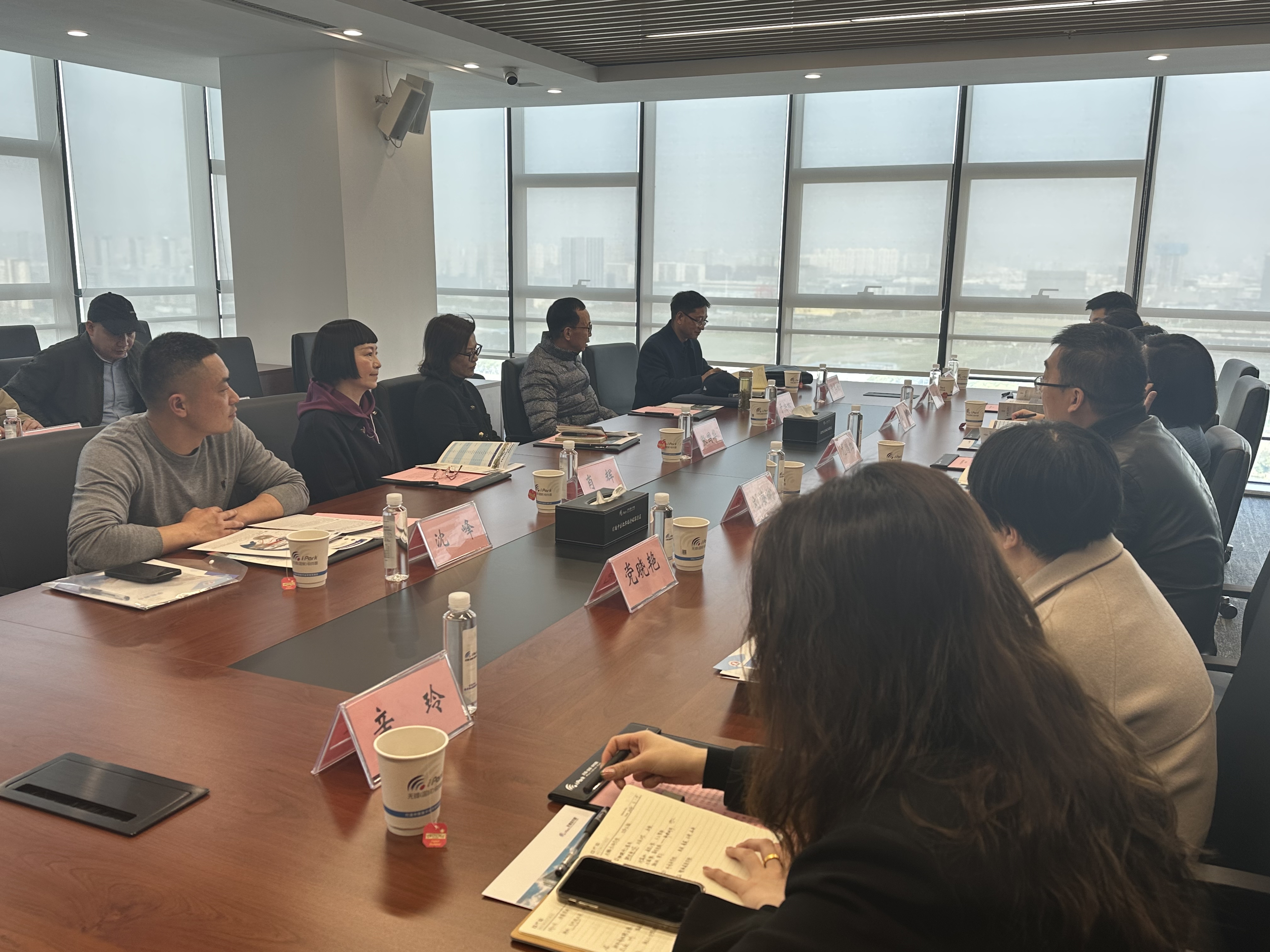 为贯彻落实无锡太湖学院物联网工程学院关于“访企拓岗”促就业专项行动工作部署,进一步深化产教融合,推进校企合作,拓宽毕业生就业和实习的渠道和资源,全力促进2024届毕业生更充分更高质量就业,2024年3月19日上午,在无锡(国家)软件园开展了“校地共建、园院合作、提升留锡”的校企交流会,无锡太湖学院参会代表有就业处处长张国华、就业科科长刘刚、物联网工程学院常务副院长成本茂、物联网工程学院党总支副书记沈峰、智能装备工程学院党总支副书记杨学圣、智能建造学院院长于安林、智能建造学院党总支副书记余波、外国语学院院长肖辉、外国语学院党总支副书记俞昊波;园方参会代表有无锡软件产业发展有限公司党委副书记、纪委书记尤鹃红、总经理助理徐鹏、党群工作部副部长党晓艳、企业服务部副部长梅琛、企业服务部工作人员王昆仑,辛玲、极客营无锡中心校长刘海斌。