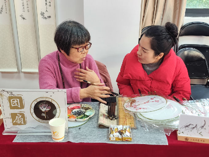 来自梁溪区溪心时伴志愿服务中心的工作人员介绍,本次活动是三友非遗传承社团来组织的,团队由擅长撕纸篆刻的谈闻安、擅长书画团扇的谈映芝和擅长剪纸绣花的曹亚平三个好朋友发起。