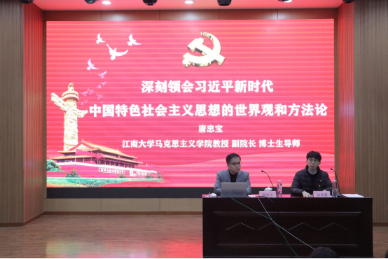 为深入学习习近平新时代中国特色社会主义思想,领会习近平新时代中国特色社会主义思想的世界观和方法论,会计学院于12月13日下午1:30在大学生活动中心A一楼报告厅开展了“新思想专题宣讲进校园”主题讲座。本次讲座特邀江南大学马克思主义学院副院长唐忠宝教授主讲。