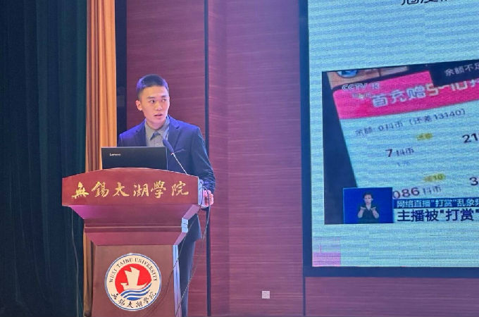 活动开始后,选手按序上台展示并表达自我。蒋乐同学以宣传无锡古镇旅游为基点,从翻译视角出发,讲述语境理论,用形象化的表达讲好中国故事。高菱婧同学考察相关立法实际情况,对新媒体时代下我国网络暴力及其规范治理发表了自己独到的见解。陈昊愉同学讲述了对于未成年人网络直播打赏合同性质等相关法理问题的思考以及提出针对司法实践上对于打赏效力认定和相关法律问题承担等诸多问题的完善建议。管艺琳同学立足于当下一带一路倡议蓬勃发展的背景,从卡特福德翻译转换视角出发,研究经济政策类文本的翻译应用。李楚楚同学讲述了关于“接地气”的日英两国语言的翻译和汉语的语感,将中日英三国文化相互融合,创造出剖为完整的翻译画卷。
