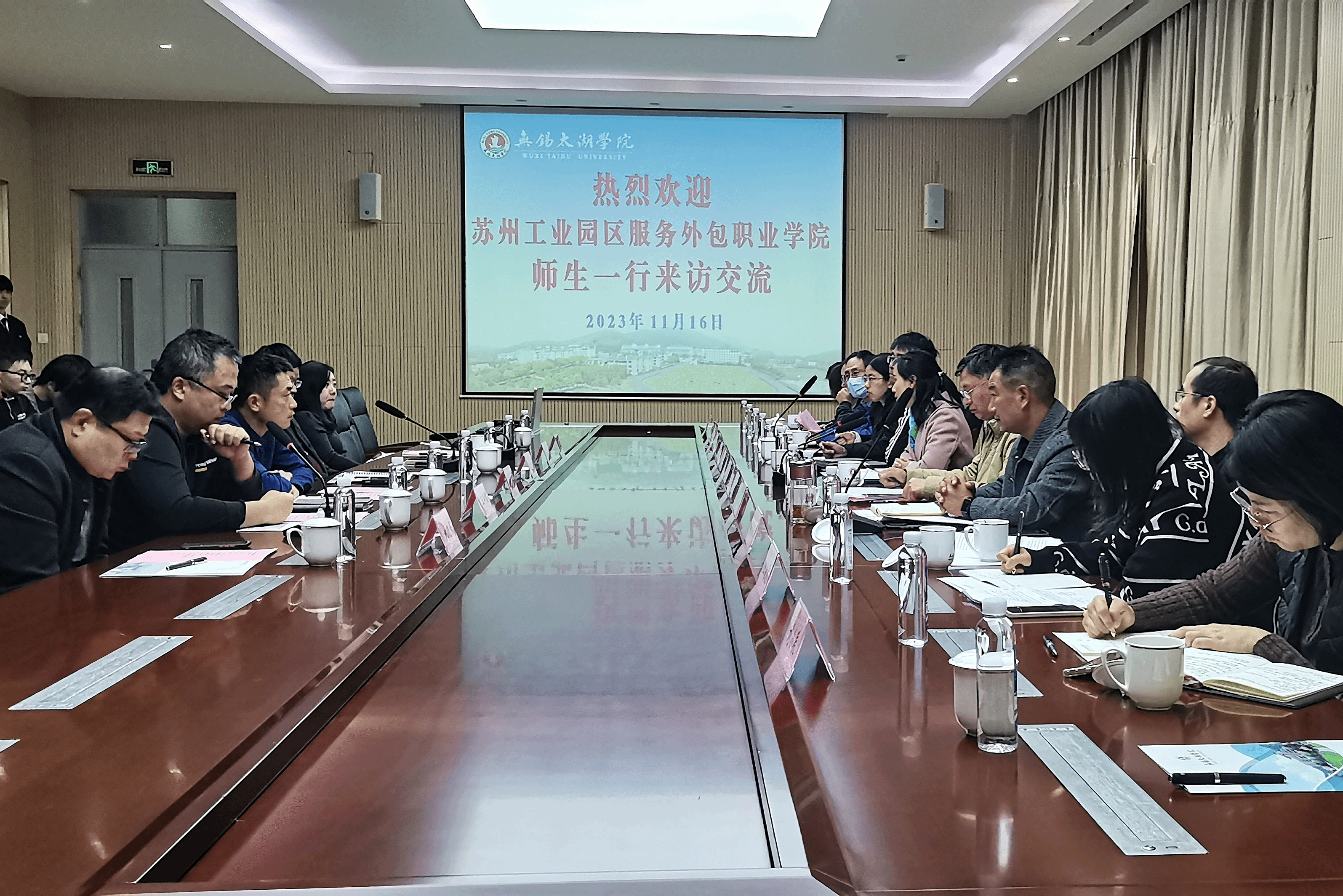 本次访学活动首先播放无锡太湖学院宣传片,其次成本茂院长介绍物联网工程学院的基本概况,苏州外包职业技术学院的师生普遍感受到了学校的风貌。随后物联网工程专业姚湘带领师生团队参观了“物联网应用技术重点建设实验室”,给师生们带来了良好的体验。最后两个专业进行了师生专业互动。