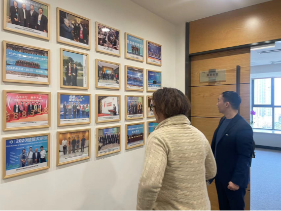 交流的第一环节是“让学校了解企业”。因此,蒋董介绍了悦通集团的概况——以江苏悦通会计师事务所为核心的综合性服务平台,提供财务、税务、法务、人力资源、资产评估、工程造价、物流关务等一系列综合性专业服务。尤其是介绍了集团走在前列的绿色发展咨询服务,共同交流了绿色发展的社会责任。此外,她还带领大家参观了办公环境,传递了企业价值观、企业文化等。她表示,作为一家综合性公司,悦通集团经受住了经济下行的考验,依旧保持着招聘需求,也愿意为学院提供更多的实习与就业机会。目前我校为悦通集团输送了7名正式员工和5名实习生。