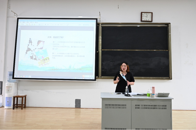 吴处长以《我的大学梦》为题,从“立志、追梦、达志”三个方面与同学们进行了精彩的分享。她表示大学的学习目标非常重要,就像没有方向的船,什么风都不是顺风,需要同学们有明确的发展目标,需要同学们培养独立的能力,专注的力量和钻研的精神。吴处长还给同学们分析了大学每个阶段的重要内容,要求同学们学会管理自己、约束自己、发展自己。结合专业特点,吴处长希望同学们在校期间要加入社团、积极参加竞赛、志愿服务和实践活动,考取专业性技能证书,朝着“本科水平、一专多能”的人才培养目标奋勇前进。报告尾声,吴处长希望同学们加快融入校园生活,要爱班、爱校、爱国,要坚持运动、健康规律,要学到知识、掌握本领,在太湖的四年中遇见更好的自己。