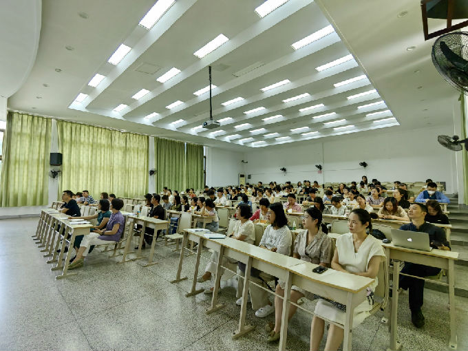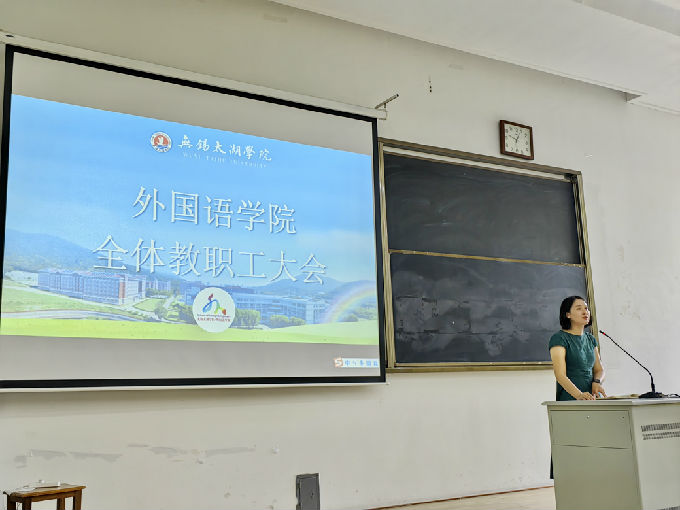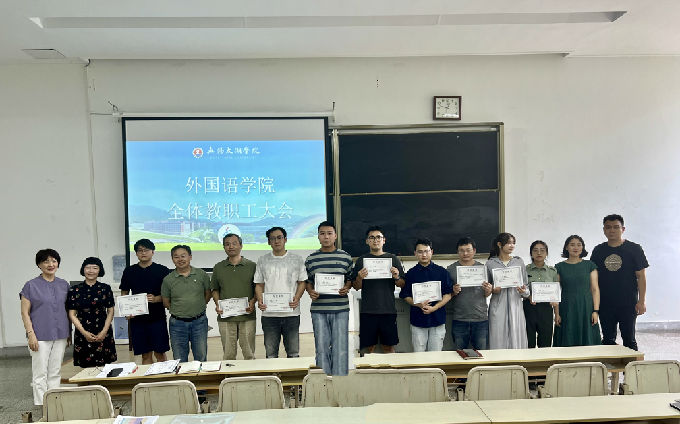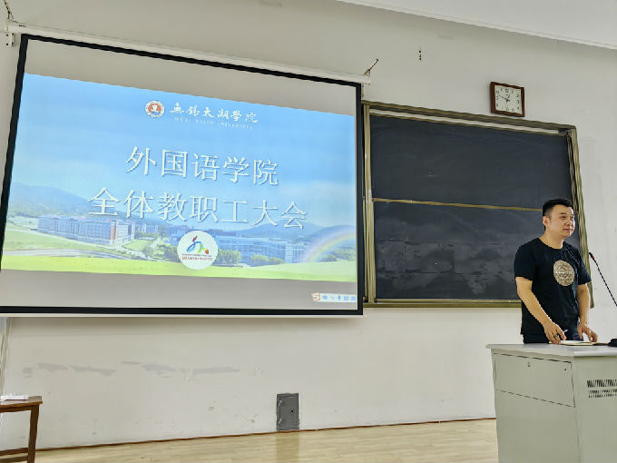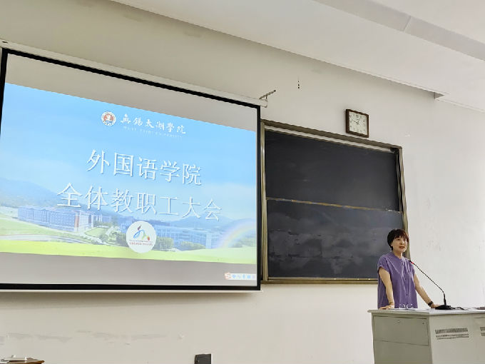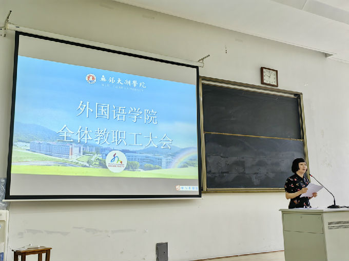 外国语学院于2023年9月7日在6号楼121教室召开2023-2024学年第1学期全体教职工大会。会议由常务副院长肖辉主持并作重要讲话,副院长刘荔、副院长吴旻昊和党总支副书记俞昊波分别讲话,全体教职员工参会。