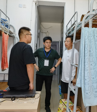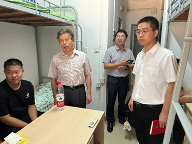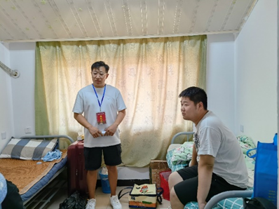 新学期、新起点、新希望,2023年9月10日,迎新工作即将进入尾声。为深入了解我院23级新生的入住情况,进一步加强宿舍安全管理,引领新生更快适应校园环境。智能装备学袁惠新院长与杨学圣书记带领老师和新生辅导员走访新生寝室并展开新生查寝慰问工作。