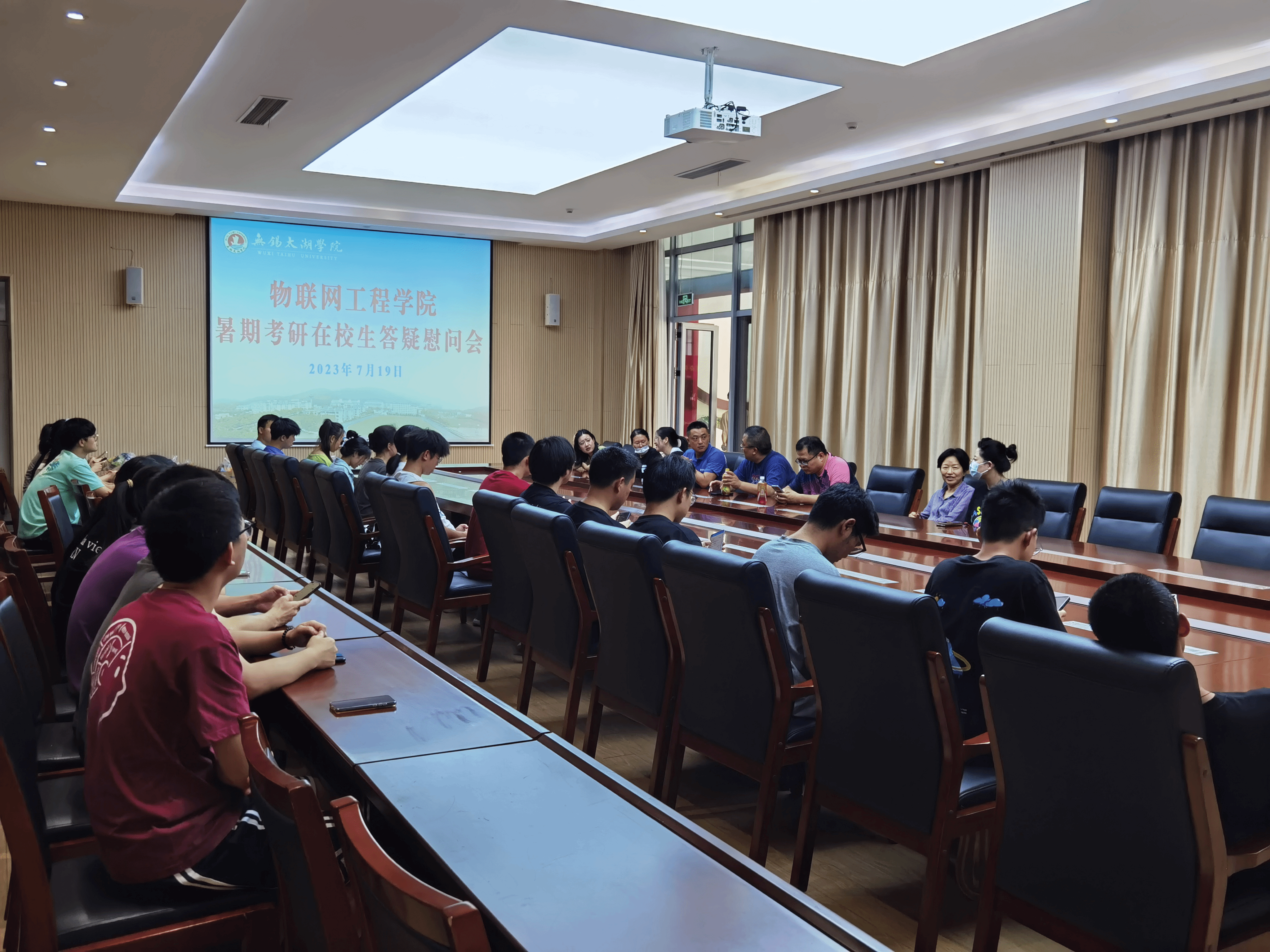 开展暑假慰问在校参加学科竞赛与备战考研的学生活动是物联网工程学院的优良传统,不仅可以及时了解学生的思想状态、学习情况,更体现了学院对学生的人文关怀。