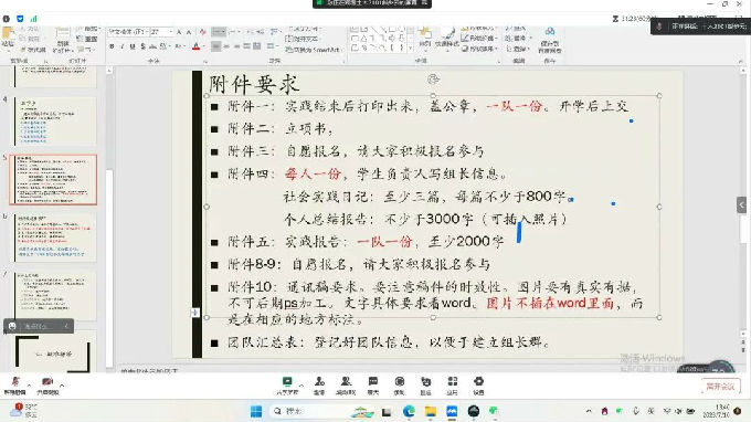 大会伊始,彭步云同学针对此次会议的第一部分进行讲解,向同学们说明三下乡的活动意义和活动形式,以及三下乡活动的重要性。向同学们介绍了三下乡活动可以从文化、科技、卫生几个主题入手,是各高校在暑期开展的一项社会实践活动,同时特别强调了今年的三下乡活动建议采用兴新方式,避免以线上的形式进行。活动内容一定要真实有效,具有可行性。