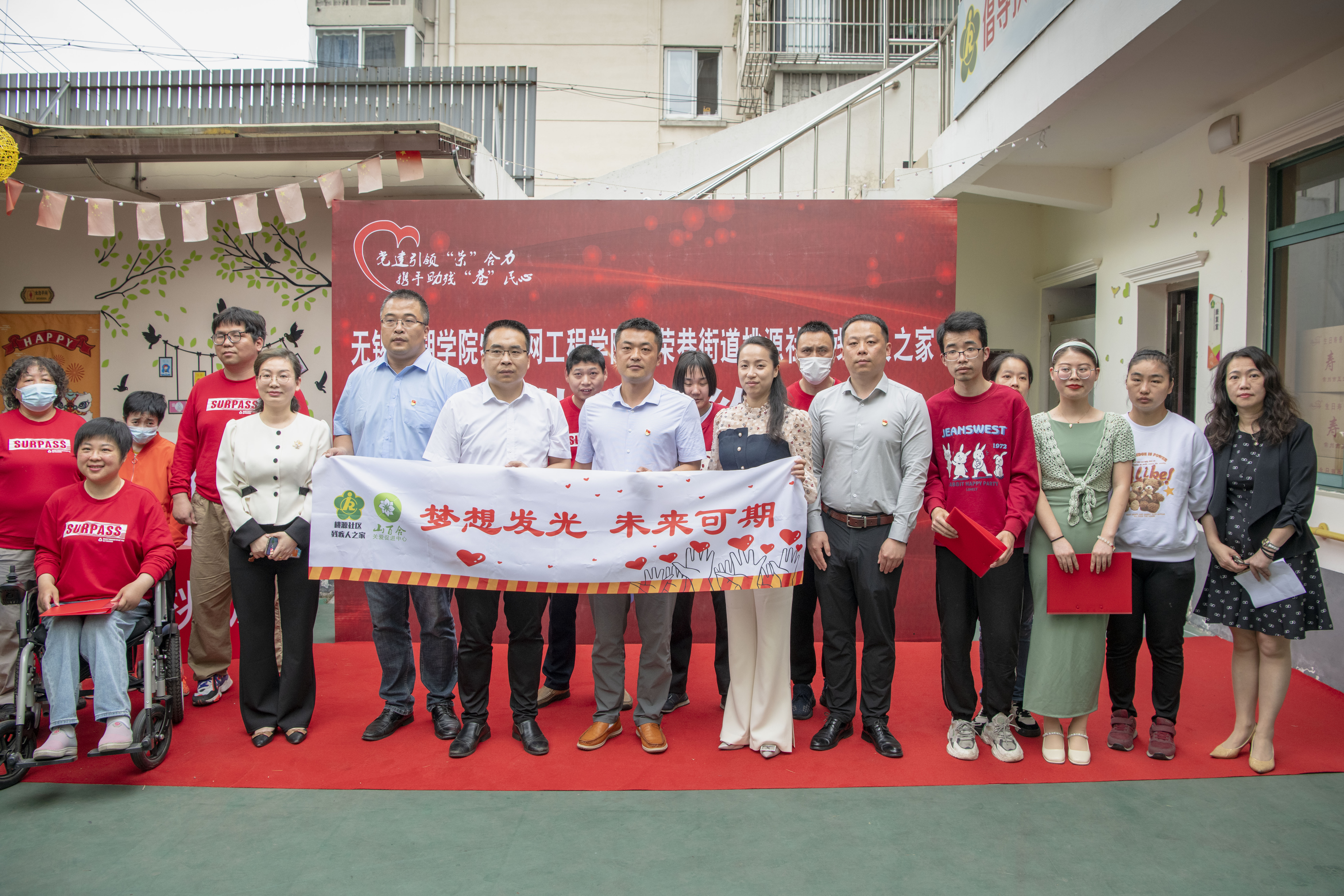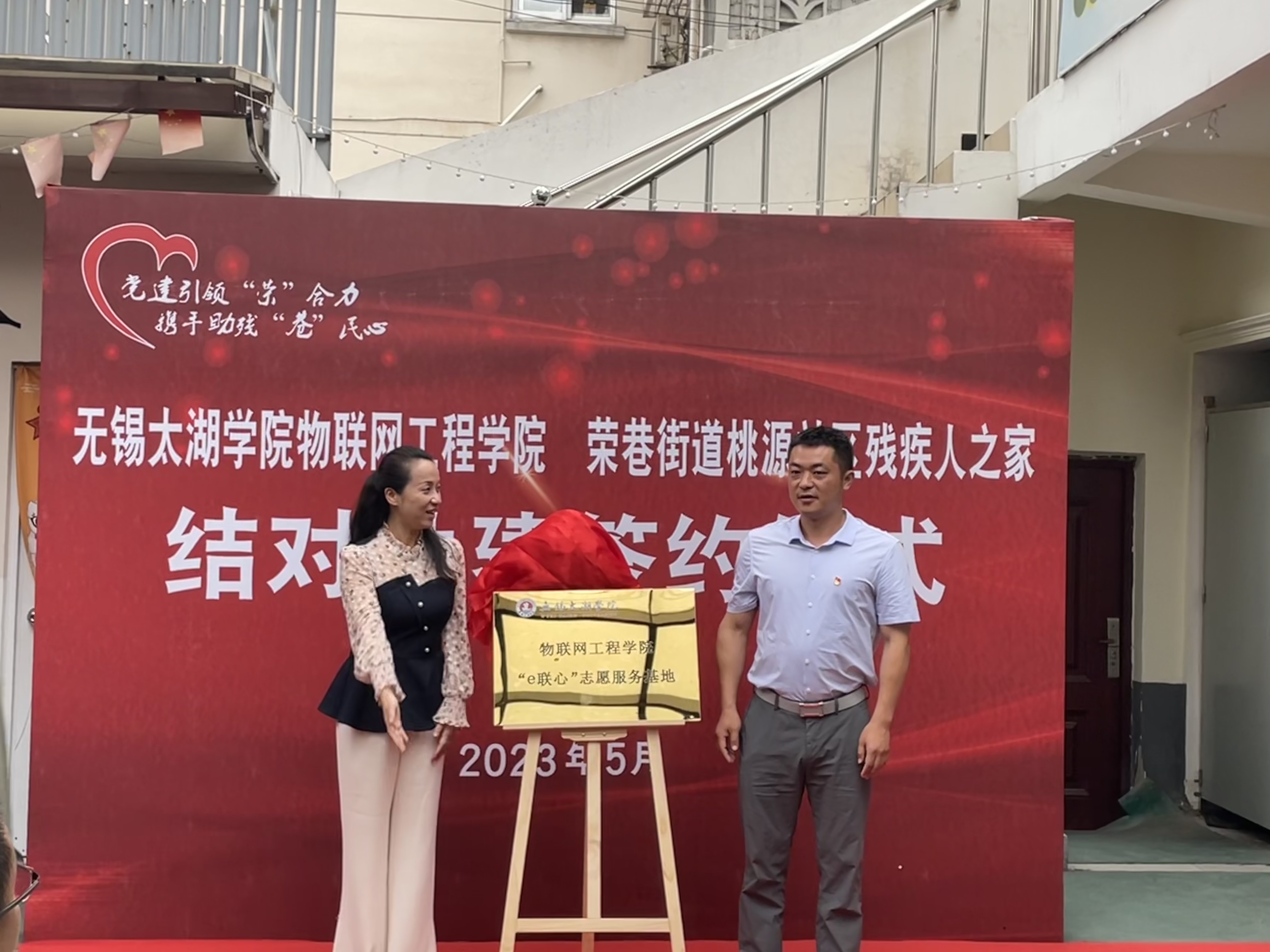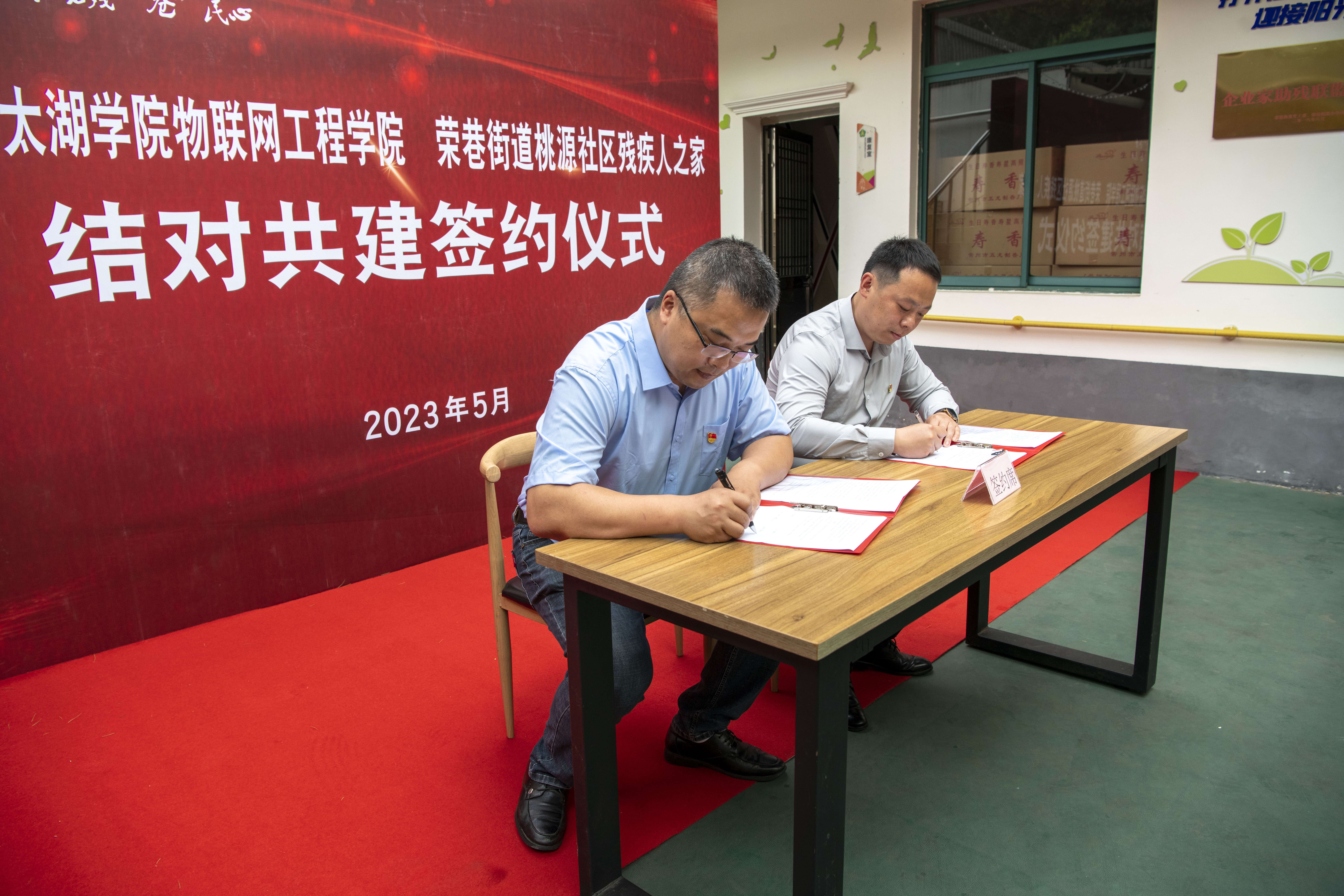 5月17日,无锡太湖学院物联网工程学院与滨湖区荣巷街道桃源社区残疾人之家结对共建签约仪式在荣巷街道桃园社区残疾人之家举行。滨湖区残联副理事长缪卫平,荣巷街道党工委委员、办事处副主任魏玉莲,荣巷街道社会事业办主任嵇蓓蕾,桃源社区党委副书记、工作站站长陈沁,山百合关爱促进中心吴迪,无锡太湖学院物联网工程学院党总支副书记沈峰,副院长王华君以及党总支成员等参加了签约仪式。