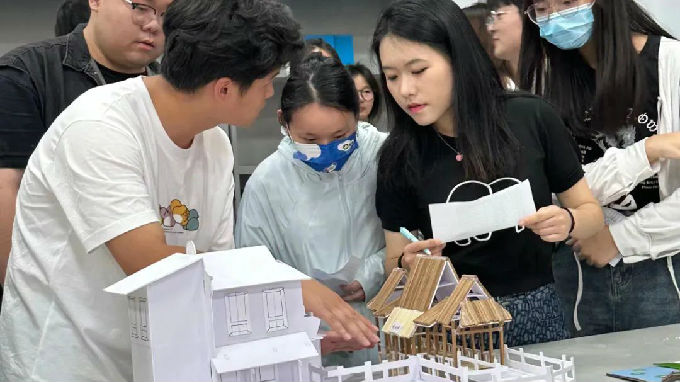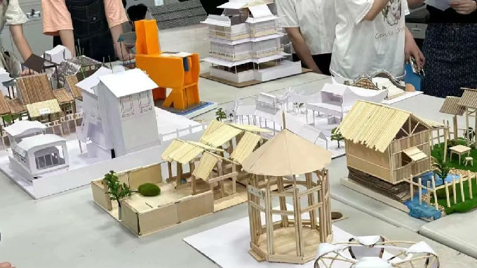 同学们在比赛的过程中尽情发挥自己的创造力,从材料选材、结构构思等方面都做了相应功课,他们将江南水乡之美融于作品,经过一周的精心制作,于5月15日进行评比。