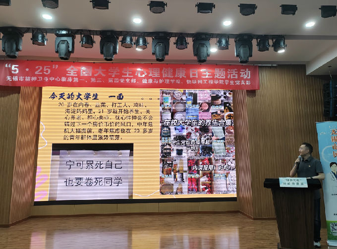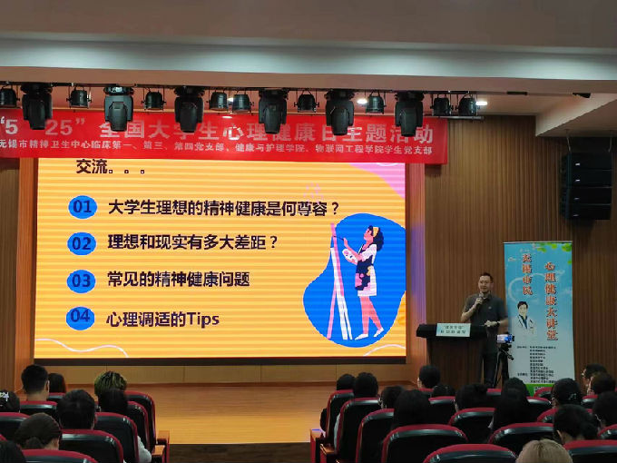 随后,由无锡市精神卫生中心田霖博士给现场观众带来主题为《大学生精神健康和心理调适》的讲座。田霖,医学博士,副主任医师,副教授,南京医科大学硕士研究生导师,江南大学特聘学术研究生导师,无锡市精神卫生中心普通精神科主任。在田主任深情并茂的演讲下,对当前大学生心理现状和容易产生的心理问题都给予了解决思路和调适办法,相信大家都受益匪浅,希望所有学生在学习生活中要学会关爱自我、了解自我、接纳自我、关注自己的心理健康和心灵成长,提高自身心理素质,健全健康的心理品质。