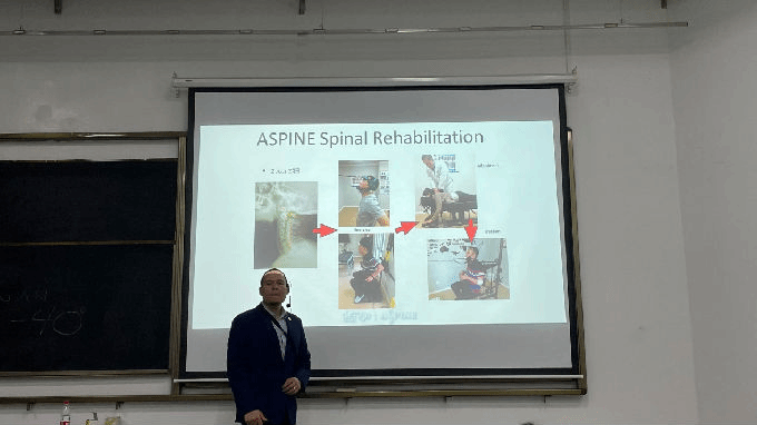 通过此次讲座中Dr.Juan的理论讲解和简单的实际操作,让同学们对脊柱神经矫正技术有了初步的了解,不仅扩大了同学们的知识面,还进一步增加了同学们对康复专业的认识,相信同学们都收获颇多。活动过程中同学们认真学习、反响热烈,表示今后要学以致用,为身边的家人朋友进行康复。在讲座的开始,Dr.Juan讲述了自己学习康复的历程,并强调了坚持的重要性。只有坚持不断地学习,才能掌握更多的知识。活动最后,Dr.Juan也热情邀请同学们有时间去他所在的工作室学习,他希望同学们能掌握更多的技术,以后成为优秀的康复人才。康复从损失功能、活动范围、平衡能力等多方面给出整体的康复治疗处方,通过康复训练最大限度的恢复关节功能、减轻残疾、预防复发、促进正常功能模式的形式,而且康复的对象非常广泛,有残疾人、脑卒中患者、偏瘫患者、运动损伤患者以及患慢性疾病的人群等等,如今我国处于老龄化社会,康复的需求大。由此可见,康复的重要性,激励同学们努力学习,未来为康复行业贡献自己的一份力量。