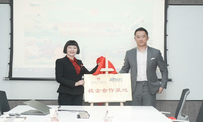 接着,由潘阳带领我院领导和6名员工进行了挂牌仪式,无锡新东方学校作为与我院合作的实习就业基地,将全面支持我校毕业生就业。范校表示,希望人才可以达到人才培养方案的要求,提升整体素质、专业能力和社会实践能力,为校企合作提供保障。我院领导也表示,学院将全力以赴,为提供优质人才努力,动员教师和学生积极参与就业工作,为祖国建设增砖添瓦。