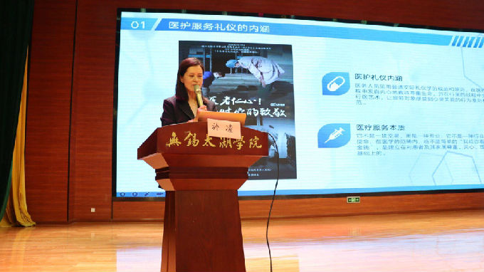 随着系统化整体护理在临床实践中的应用和发展,要求护理人员除了拥有丰富的专业理论知识和熟练的操作技能外,还应具有良好的仪容仪表及专业形象。因此,要进一步改进护理工作,提高护理质量,首先必须从塑造护士礼仪着手,为此健康与护理学院于4月14日在工科楼一楼报告厅开展主题为“护礼同行,和谐护患”的护理服务礼仪培训讲座,讲座特邀江南大学副教授兼硕士生导师於凌教授主讲。